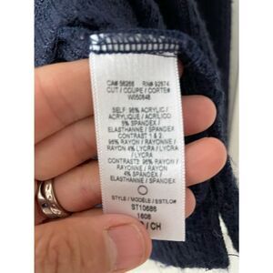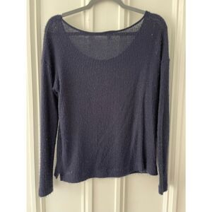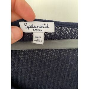 Splendid navy lightweight almost sheer sweater, acrylic elastane rayon spandex, size small, definitely some wear and pilling, but cute and still has lots of life, pit to pit 20.5 inches, shoulder to bottom 23 inches, sleeve length 19 inches