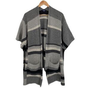 Splendid striped wool cashmere open boho cape pinch cardigan sweater gray black. Size is one size (listing as a medium because it will definite fit a medium as well as small large and extra large). Excellent condition see photos for measurements and fabric content