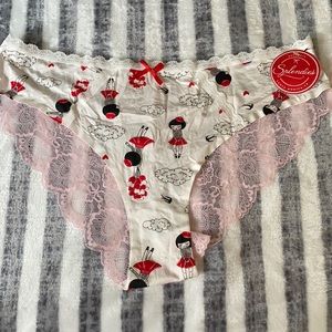 Four pair NWT. The cream colored ones have a pink all lace back that are completely see through. Pet friendly smoke free home.