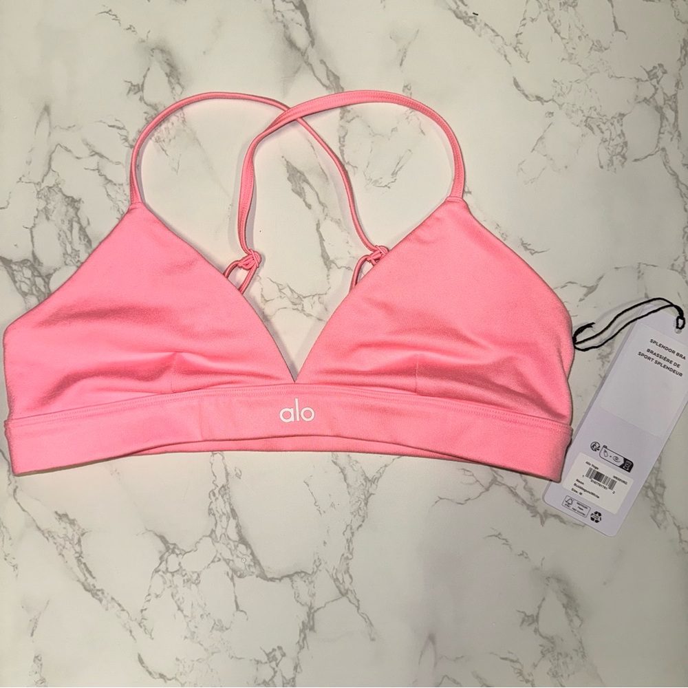 Alo yoga splendor bra in neon bubblegum pink/white. NWT. No trades. Not available online