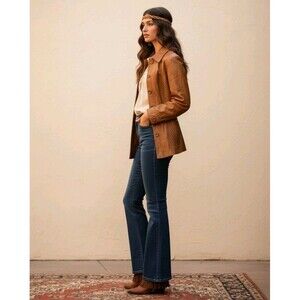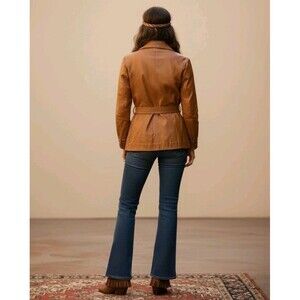 Split End Leather Jacket Womens Small Vintage 70s Woven Belted Camel Tan Blazer