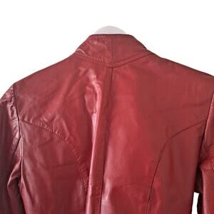 Split End Limited Red Leather High Neck Long Sleeve Jacket with Belt - Size 11