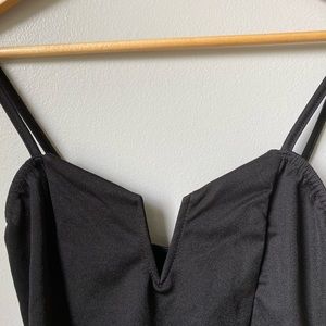 Also available in white. A stretchy top with semi-heart neckline that can be dressed up or down. Has a split detail and light boning details throughout the bodice. Viscose. Brand new. Boutique.