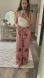Flowy and comfortable pink floral pants. Elastic waistband and tie front detail. Hems are split on the sides to create a wrap effect (as shown in video)