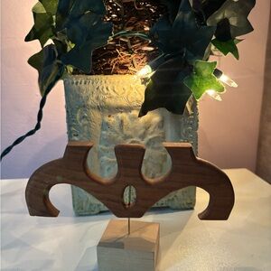 A handcrafted brown wooden wall accent with smooth carved details. Features warm brown tones that enhance rustic and modern interiors. Lightweight design for easy placement and visual interest. The brown finish adds natural warmth to any room. One of a kind handmade by my grandpa!