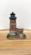 Charming lighthouse figurine with houses on a rocky base. Features rust, white, and black colors. Does not light up. GUC