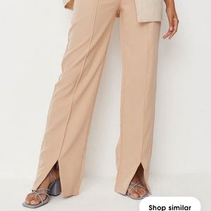 high waist straight leg pants with seam leg detail, split hem and concealed zip fastening.