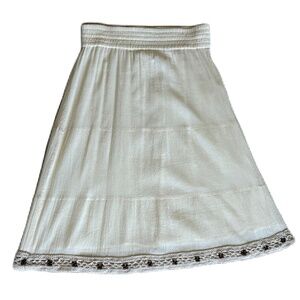 Split crinkle gauze lined crochet beaded trim pull-on maxi skirt