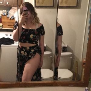 Flowy, beautiful, has a Large slit all the way up both sides. Making it a bit sexy