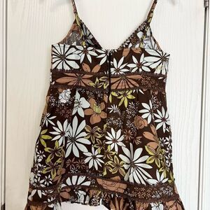 In excellent preloved condition . With minimal to no signs of wear . Description(Color / pattern)- brown floral Approximate measurements: Bust ( pit to pit)- 16 In Adjustable straps Zip back closure Please make me an offer I can’t refuse. All reasonable offers considered. Bundle for best price . From smoke free pet pet friendly home. Thank you for supporting my small business. Happy shopping .