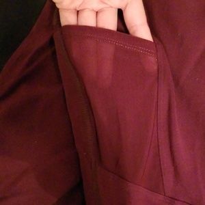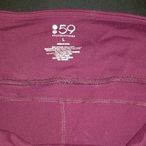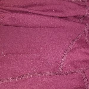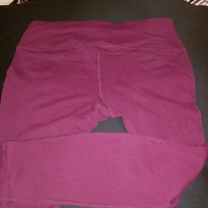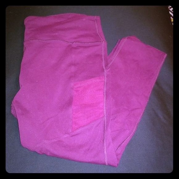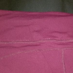 Midrise legging in Hawthorne (eggplant/purple), size large. These feature mesh pockets on the thighs. Some of the stitches popped at the waistband (see pictures 5 and 6), and there is also some pilling in the crotch/upper thighs. Otherwise, these are in very good, used condition.