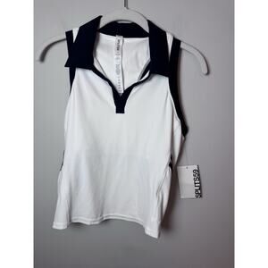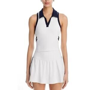 Splits59 Austin Airweight Crop Polo Top Women's Size M White Navy Athleisure NWT