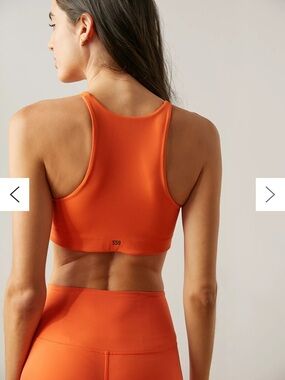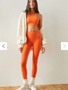 Vibrant orange high-neck bikini crop top. Matching leggings played separately. NWT.