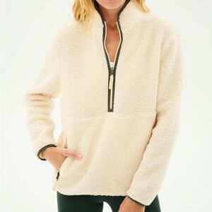Soft sherpa pullover with quarter-zip. Features front pocket and sleek trim.