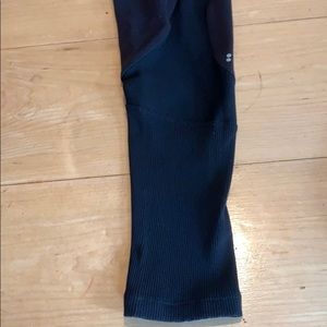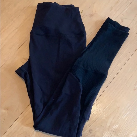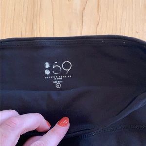 Splits59 full length racer legging. All black legging, slightly worn but in good condition. Spots were pilling has occurred are photo’d and reflected in price. The have a stretchy panel of black fabric the runs from the waist down to the ankle. The last several inches of the pant are all stretchy fabric, please see photos.
