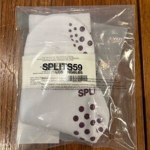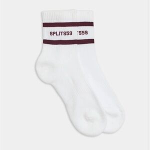 Splits59 grip socks in white with burgundy stripes. Ideal for pilates sessions.