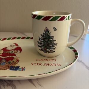 Spode COOKIES FOR SANTA Earthenware Tray/Plate + Mug/Cup Christmas Holiday Set