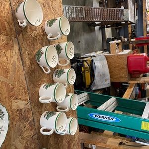 Like new, used very little. I have 6 10 1/2” dinner plates, 10 bread n butter plates, 8 8” plates, 7 mugs, w tea cups, 2 serving bowls, condiment dish, 2 decorative plate.