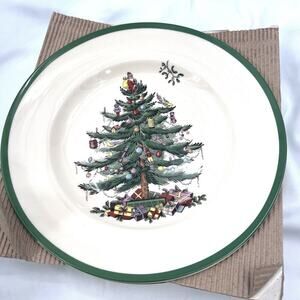 Spode Christmas Tree 10.5" Porcelain Dinner Plates Set of 4 -