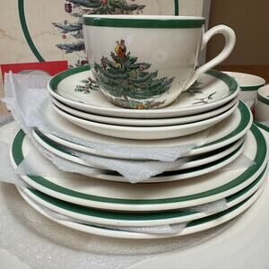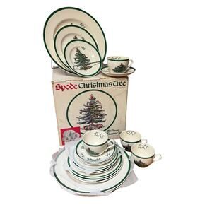 Spode Christmas Tree 20 pc Starter England 20 pc Plates 10,8,6" Cup Saucer NOS
