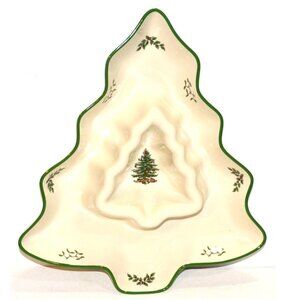Spode Christmas Tree Chip And Dip Dish Shaped Like Christmas Tree Ceramic Boxed