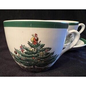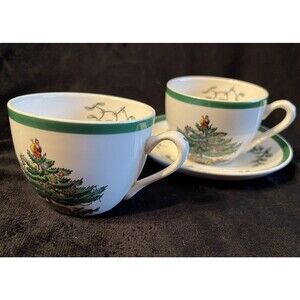 Spode Christmas Tree Cup and Saucer Set Green Trim England 2 Cups Included New. Unused two teacups and 1 saucer included. See photos for details. I ship on the same or next day from a smoke free home. I make every effort to describe items honestly and price them fairly. Feel free to make an offer or ask any questions. Im happy to help.