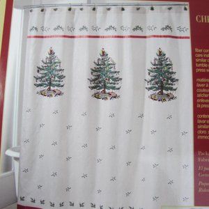 Spode Christmas Tree Fabric Shower Curtain and 12 Hooks--NIP