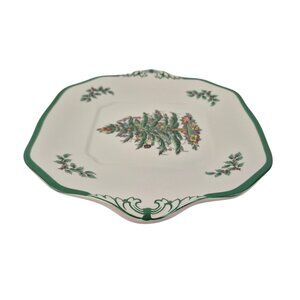 Spode Christmas Tree Handled Cake Plate S3324 R England Green Trim Indent