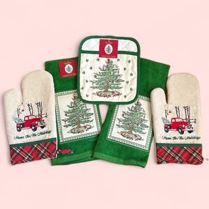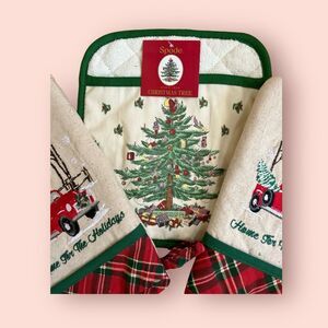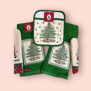 Spode Christmas Tree Oven Mitts Towels Bundle NEW