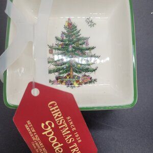 Enhance your holiday dining with this festive Spode "Christmas Tree" square tidbit plate set. They're microwave and dishwasher safe for easy cleanup.
