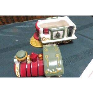 The Spode Christmas Tree Village Christmas Train Engine Covered Dish is a ceramic collectible featuring intricate multicolor designs. Manufactured in 2002, this retired piece is perfect for holiday enthusiasts looking to add a festive touch to their seasonal decor. The covered dish showcases a Christmas tree village theme, making it a charming addition to any collection of holiday memorabilia.