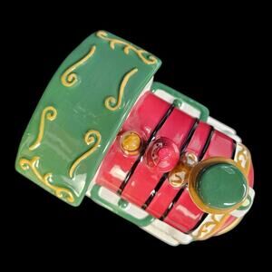 Spode Covered Candy Dish Train Engine Ceramic 2002 Christmas Tree Village READ