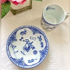 LIKE NEW Edwardian Childhood by Spode Bone China 2 pc Set Vintage Blue & White horse alphabet Cup mug & Bowl