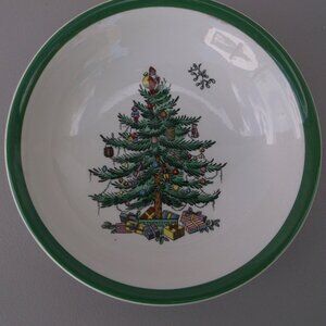 🎄 Celebrate the season with this charming Spode England Christmas Tree, small plate, featuring the iconic holiday design with Santa perched atop a colorful, festive, beautifully decorated tree. Wrapped gifts and a delicate snowflake accent complete the scene, making this a perfect addition to your holiday table or collectible display. Brand: Spode England Size: Small plate (approx. 6") Color: White with green rim, multicolor tree design Condition: Good – gently used with no chips or cracks Material: Ceramic Style Tags: Vintage, Holiday Decor, Festive Ideal for serving treats, gifting, or adding nostalgic charm to your seasonal setup. Pair it with other holiday pieces or bundle for a cozy Christmas vibe!
