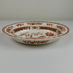 Spode Indian Tree 10 inch Oval Vegetable Bowl New Backstamp Orange Rust Scallop