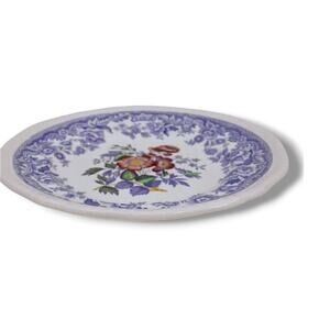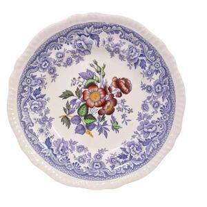 Enhance your dining experience with this exquisite Spode Copeland salad plate, featuring a beautiful Mayflower pattern in a delightful periwinkle lavender color.