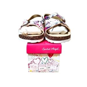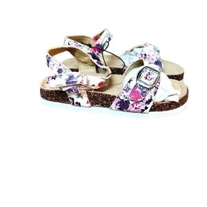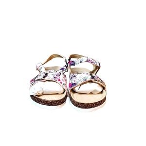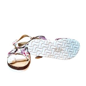 Features:Floral print double strap sandals and cork track sole.Perfect for every day wear.