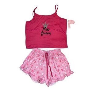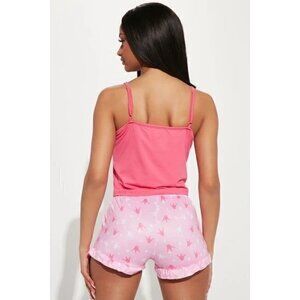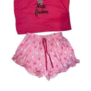Spoiled Angel Sleepy Nap Queen Cropped Cami Ruffle Trim PJ Short Set Pink Large