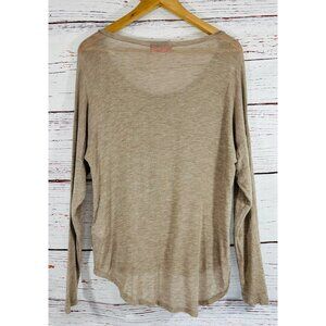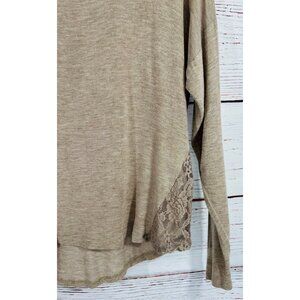 Spoiled Taupe Long Sleeve Top With Lace Accents Lightweight Scoop Neck Womens M