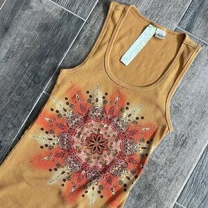 Spoiled Y2K Ribbed Sequenced Tank in excellent pre owned condition! Only flaw is a little bit of stitching is coming off on the back towards the bottom! No rips or stains. Very stretchy material!