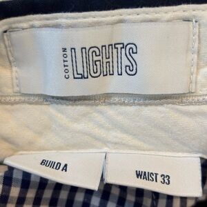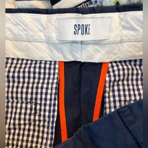 Excellent condition Spoke cotton lights chino pants. Waist 33. Gingham lined pockets. Preppy, business casual, commuting, summer, yacht, coastal. (H)