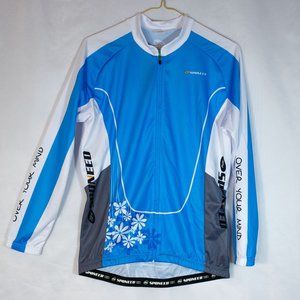 Sponeed Women's Cycling Long Sleeve Jersey Blue White Three Pockets Back Size M