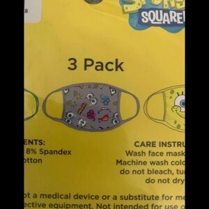 3 Pack Sponge Bob Squarepants Children’s Face Mask