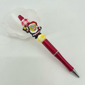 SpongeBob Christmas Santa pen handmade NEW bell yellow red glitter metallic whit
