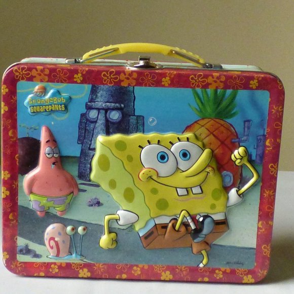 Metal SpongeBob Squarepants lunch box, embossed with SpongeBob and Patrick