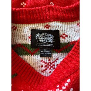 SpongeBob SquarePants Christmas Sweater Mens M Red White Snowflake Tree