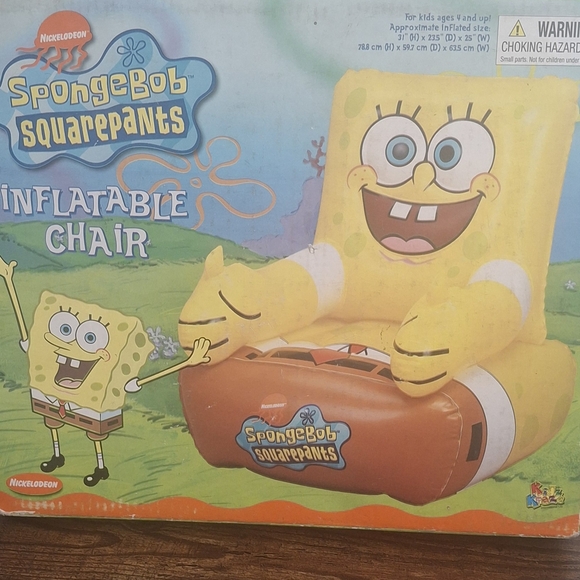 Fun SpongeBob SquarePants inflatable chair. Bright yellow design with character graphics. Perfect for kids' rooms or play areas.