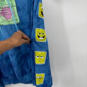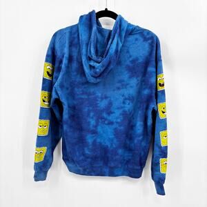 SpongeBob SquarePants Mens M Hoodie Sweatshirt Blue Tie Dye Cartoon Graphic Print Kitsch Retro Y2K Unisex