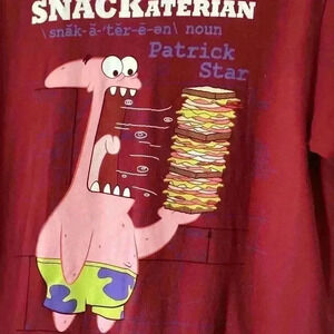 SpongeBob SquarePants Patrick Star Snackerterian Maroon T-Shirt Size Medium