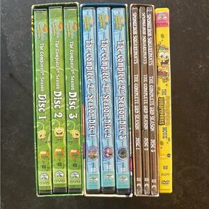 SpongeBob SquarePants DVD collection featuring vibrant covers. Includes The Complete 1st - 3rd season and the movie